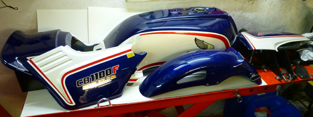Und es geht weiter. Endlich sind die Teile vom Pulverbeschichten zurückgekommen. Neben dem Rahmen und Anbauteilen meiner CB750K habe ich auch ein paar Sachen für die 11er pulvern lassen. Als erstes habe ich den Cockpitträger getauscht, die verchromte Version passt einfach nicht zum Look der 1100er.
