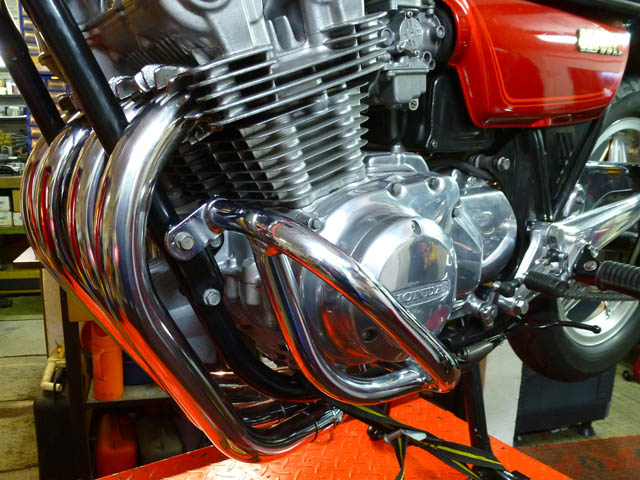 Die Auspuffanlage war schnell montiert, hatte sie doch keinen Schaden genommen. Einzig die Auspuffkronen gefielen mir nicht, im eingebauten Zustand lassen sie sich schlecht reinigen und schon bei der ersten Montage hatten sie Rostansatz. Aber mittlerweile hatte ich einen guten Satz in meinem Teilefundus, der brauchte nur poliert werden. Das Ergebnis überzeugt.