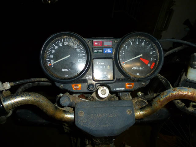 Während meiner Ersatzteilsuche stieß ich auf nachfolgende Maschine, beschrieben als "mit leichtem Rostansatz", tatsächlich aber absolut fertig. Die Maschine wurde nach nur 4 Jahren auf der Straße 1987 abgemeldet und dann 26 Jahre draußen unter einer Überdachung gelagert! Ich denke, die Bilder sprechen für sich.
